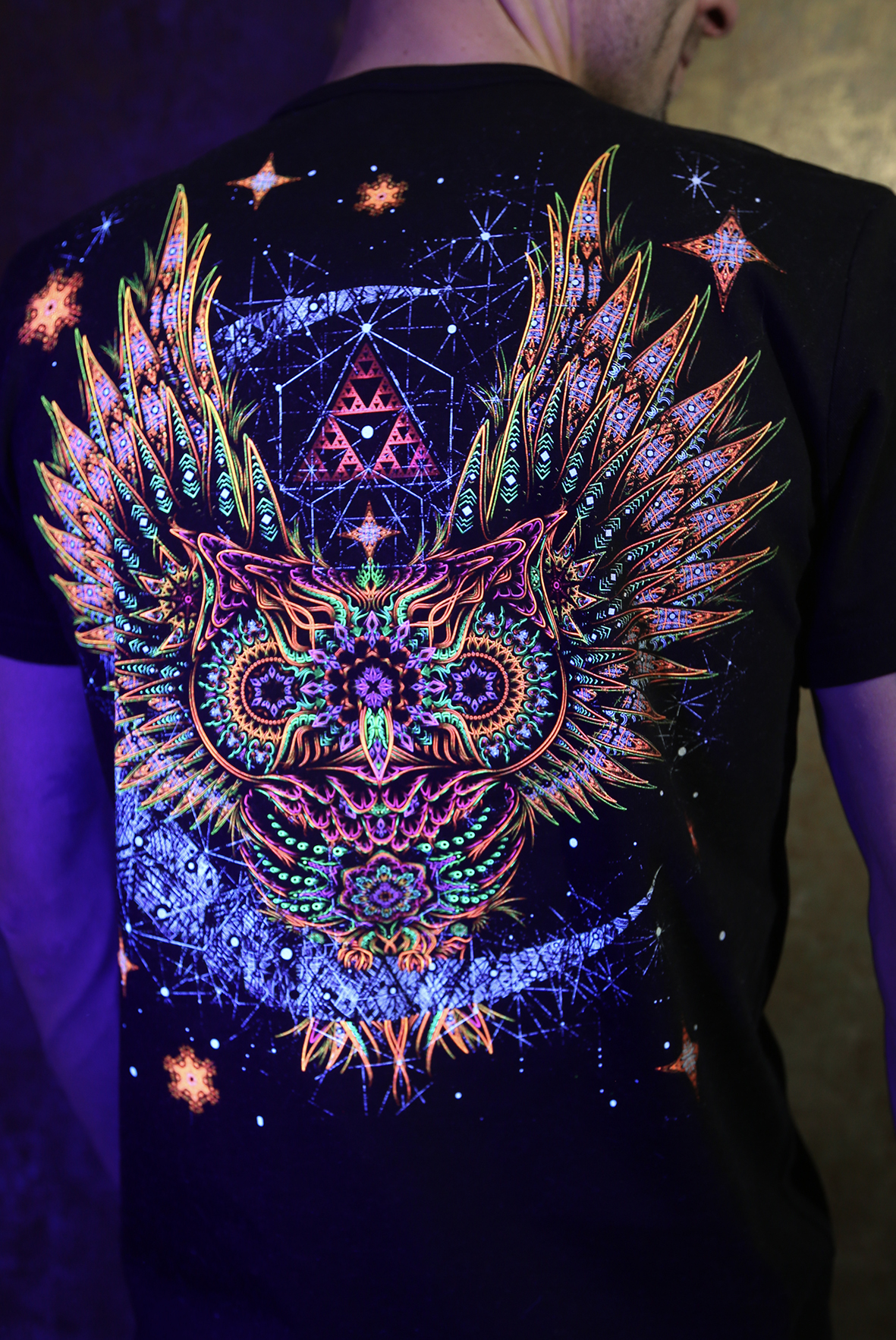 "INSOMNIA" Men's T-shirt Collection "INSOMNIA" Special UV and glow in the dark inks Fabric composition: 92% cotton, 8% lycra Size chart: M - 48,... Share : Facebook VKontakte Twitter Choose color : • Choose size : L Choose quantity: Total price: € 40 To Cart